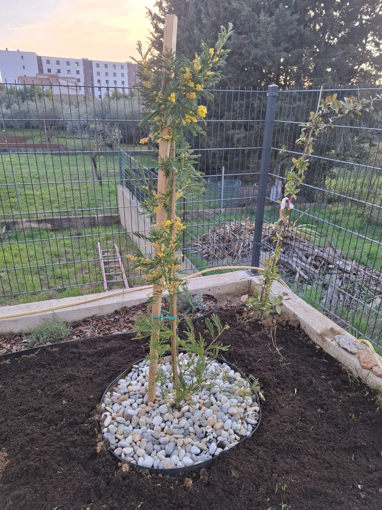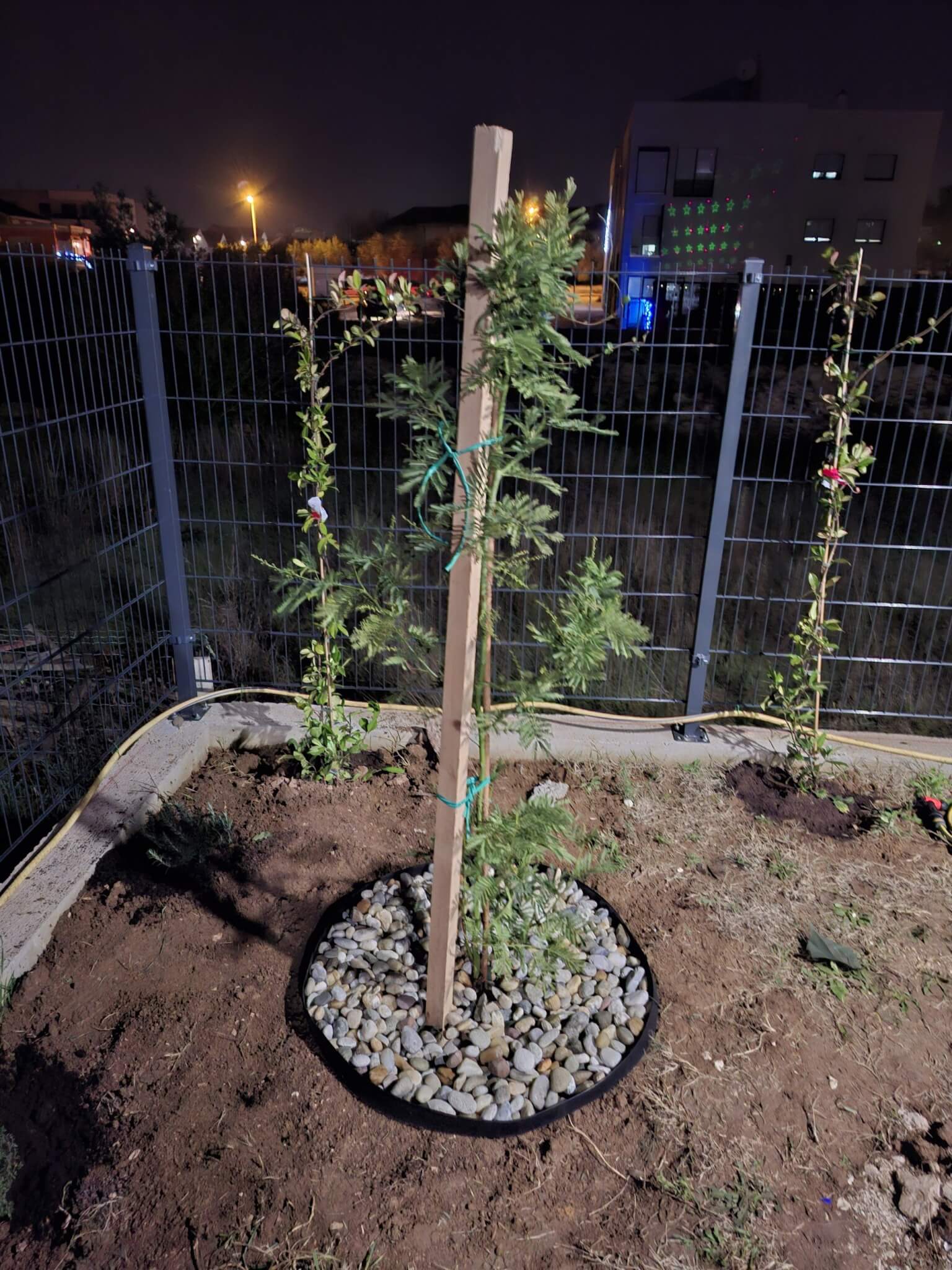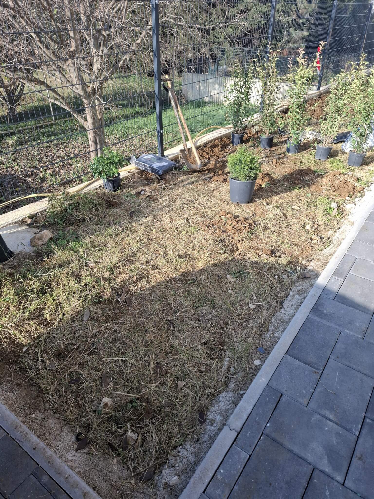 Želja klijenta je bila urediti travnjak sa ukrasnim biljem te zajednički dio na ulazu u zgradu. Uz ogradu smo posadili jasmin jednim dijelom te drugim dijelom male grmove puzajućeg ružmarina i timijana. Također uz rub je posađena živica od ligustruma te jedno stablo mimoze. Zajednički dio zgrade je uređeno sa sitnim grmovima poput lavande, smilja, kadulje u kombinaciji sa sitnim tucanikom. Također napravljena je i mala stazica u vrtu
